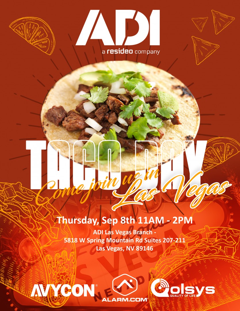 ADI Taco Day - Come join in Las Vegas and enjoy delicious tacos and check out the latest line of products presented by AVYCON, Alarm.Com and Qolsys.