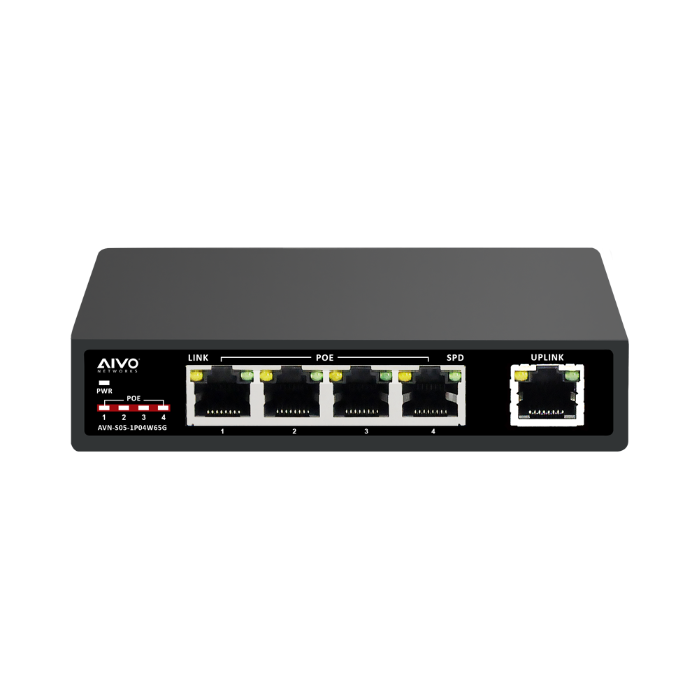 The AVN-S05-1P04W65G is a compact size 5 port gigabit PoE switch. It provides 5 10/100/1000Mbps Auto-Negotiation RJ45 ports. All 5 ports support Auto MDI/MDIX functions which include 4 ports with PoE function. The PoE ports can automatically detect and supply power for the IEEE802.3af and IEEE802.3at compliant Powered Devices (PDs), like Voip Phone, PoE APs, IP Phones, IP Cameras, etc.