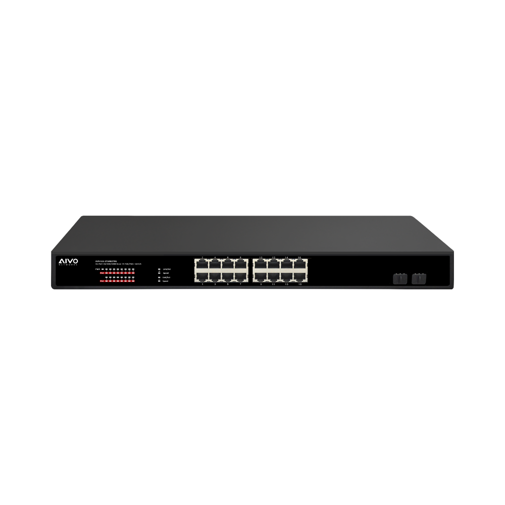 The AVN-S16-2P16W270G-SP is 16 port Gigabit PoE/PoE+ Switch with 2 x 1000Mbps SFP ports. The AVN-S16-2P16W270G-SP provides 16 PoE/PoE+ ports, which can automatically detect and provide power for any connected 802.3at/af Powered Device (PD), such as VOIP Phones, APs, IP Phones and IP Cameras. With its built-in surge protection feature, it is suitable for larger commercial applications. The AVN-S16-2P16W270G-SP comes with industrial standard 19’’ 1U rack-mountable chassis. All PoE ports support the IEEE802.3af/IEEE802.3at standard, with a maximum output of 30W per each port and a total PoE budget of 243W.
