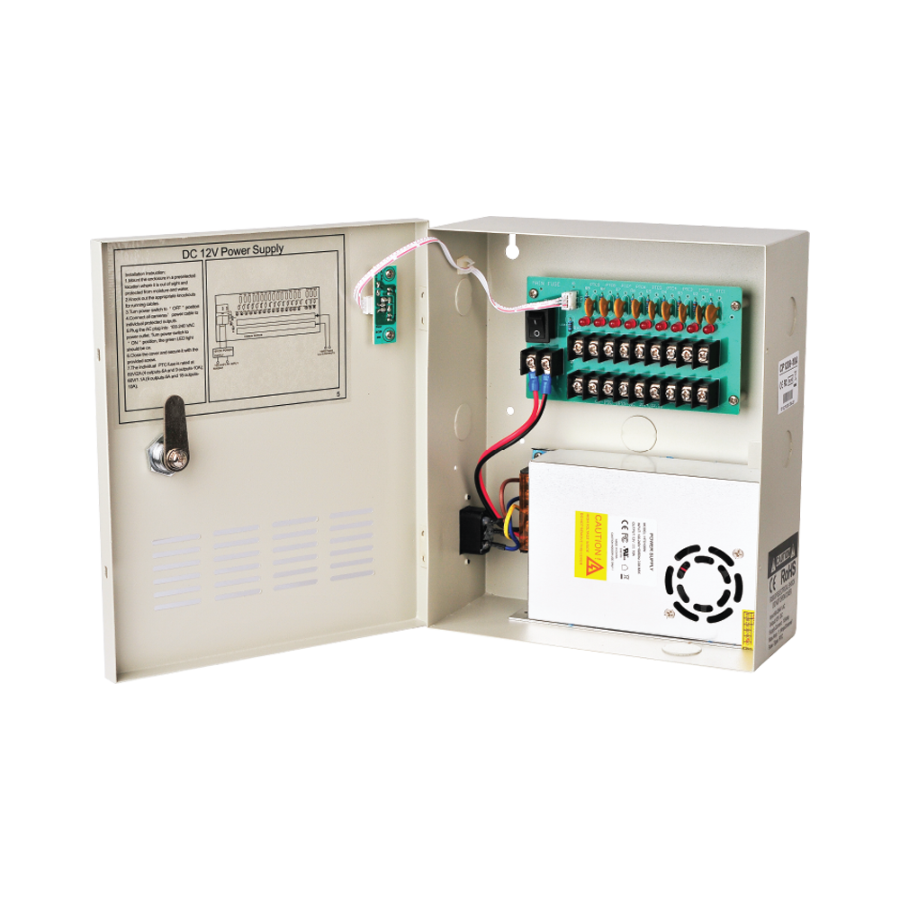 The AVA-PSW-12VDH30A-18 is a power distribution box with 12VDC, 30 Amp, 18 Channel Power Distribution Box, AC100-240V Free Voltage.